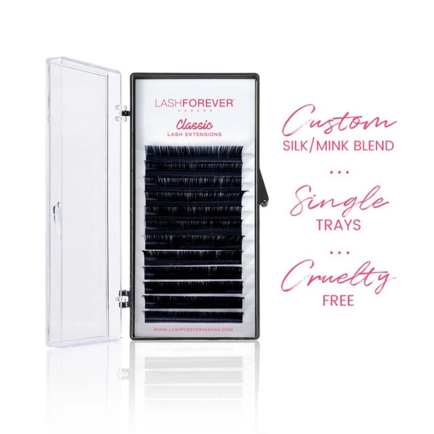 Our Lashforever Canada exclusive collection of custom-blended silk and mink lash extensions. Create a beautiful classic set or incorporate it into your volume lashes to create a Hybrid set. Available in single trays in